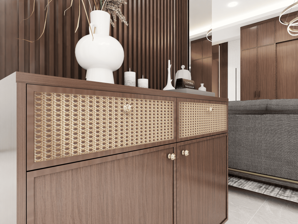 Perpaduan rattan dengan finishing kayu bernuansa natural menciptakan ruang yang terasa hidup, nyaman, dan tidak lekang oleh waktu. AMARTA identik dengan palet warna yang terinspirasi dari alam coklat kayu, dan perpaduan rattan cocok dengan kehangatan suasana baru di tahun baru.